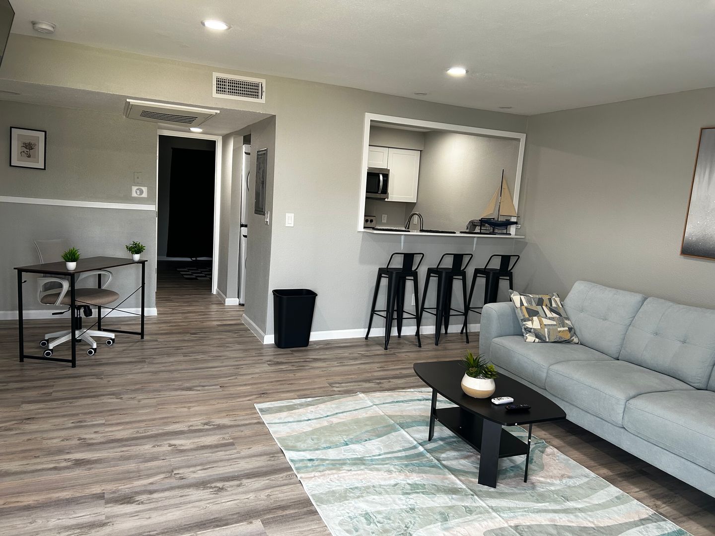 Stylish Flooring: Durable, easy-to-maintain wood-like flooring.