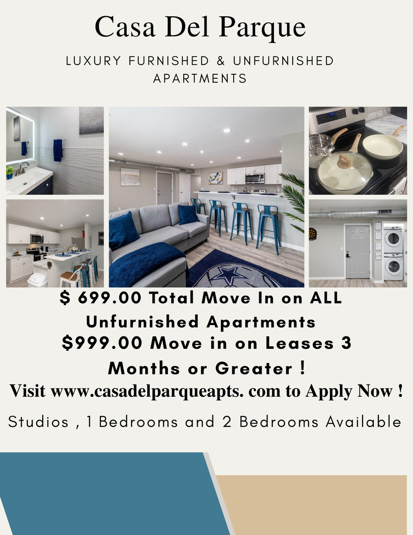 Visit www.casadelparqueapts.com to explore more and apply online.