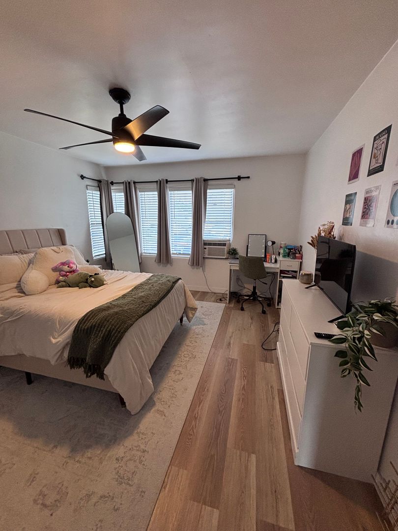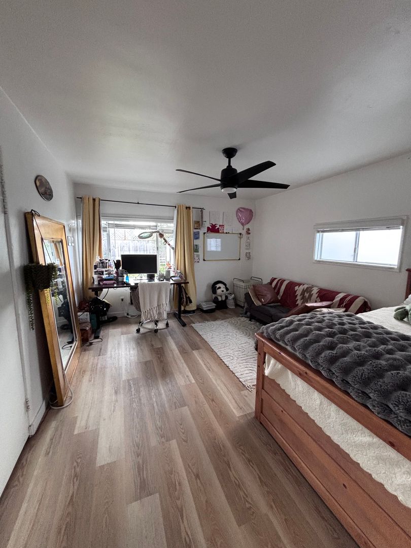 Large home just a 5 minute walk from SDSU Campus! This is the main original house on a 3-unit lot, with private entrance. Beautiful home - 4 bedrooms, 2 bath with a spacious, open-concept kitchen and dining area. Dishwasher, fridge, microwave, gas stove. Spacious backyard, Washer and Dryer on property - shared with other units.
